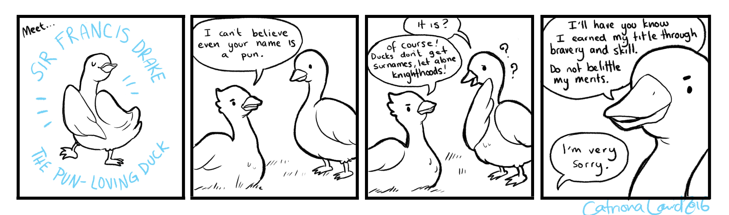 This week’s webcomic is episode 3 of Ducks and Drakes by Catriona Laird.