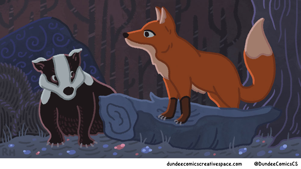 Weekly Prompt #41: Into the Woods In the twilight, night’s creatures come out to play… and for once we don’t mean vampires! Make a comic about these woodland critters. Share this: Click to share on X (Opens in new window) X Click to share on Facebook (Opens in new window) Facebook Like Loading...