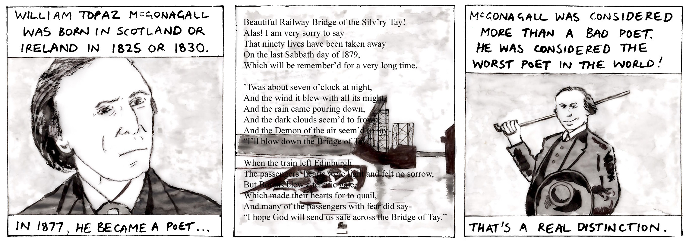 In this week’s DCCS studio artists’ webcomic David Robertson and William McGonagall have some more musings on the Tay Bridge.